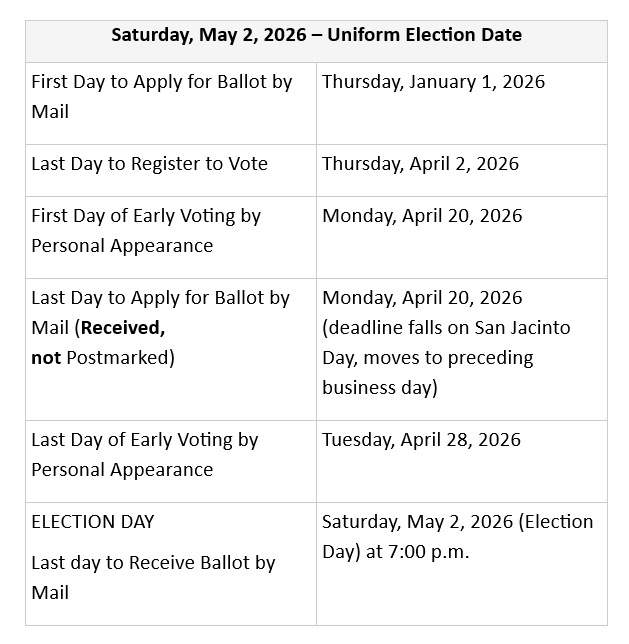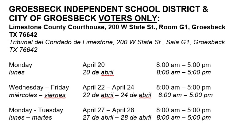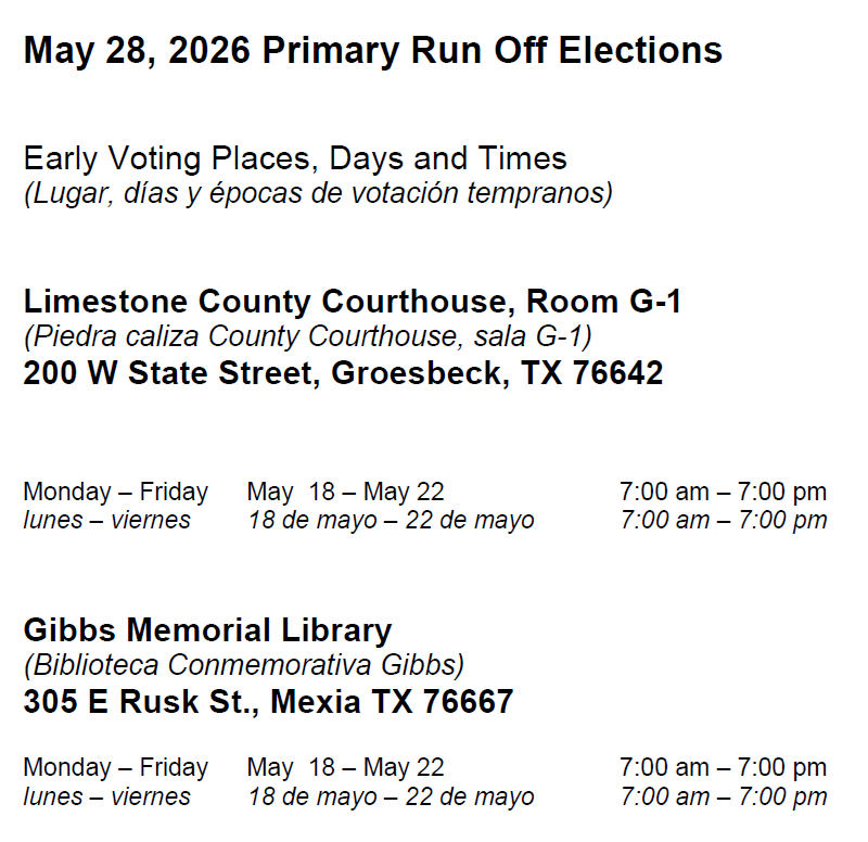 A “Vote Center” is a polling place where any registered voter in Limestone County may vote, as long as the voter lives in the county holding the election. Simply stated, with Vote Centers, there is no wrong place to vote!